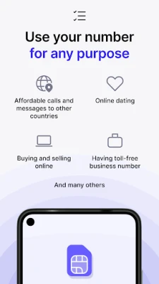 Rozšírte svoje komunikačné obzory výberom vlastného druhého telefónneho čísla z rôznych krajín, vrátane USA, Spojeného kráľovstva, Kanady, Portorika, Izraela a Kajmanských ostrovov. Naša služba vám umožňuje mať viacero liniek – či už druhé alebo tretie číslo – v rámci jednej intuitívnej aplikácie. Pre používateľov v USA je k dispozícii bezplatná skúšobná verzia, vďaka ktorej si môžete všetky výhody vyskúšať pred akýmkoľvek záväzkom. Každé číslo zahŕňa bezplatné kredity na volania a SMS, ktoré môžete podľa potreby jednoducho dobiť.