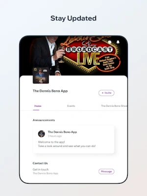 Buďte vždy v obraze vďaka aktuálnym správam a novinkám o Dennisovi Bonovi, či už ide o vydanie nového albumu, nadchádzajúce koncerty alebo exkluzívne zákulisné informácie. Aplikácia Dennis Bono app sa prispôsobí vašim preferenciám, ponúkajúc personalizované odporúčania na základe histórie počúvania, čím uľahčuje objavovanie obsahu, ktorý vás skutočne osloví. Či už túžite po dušu pohládzajúcich melódiách, obohacujúcich rozhovoroch alebo vzrušujúcom zážitku zo živého vystúpenia, táto platforma je vašou bránou do neodolateľného sveta Dennisa Bona, spájajúc hudbu, zábavu a osobný kontakt do jedného celku.