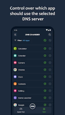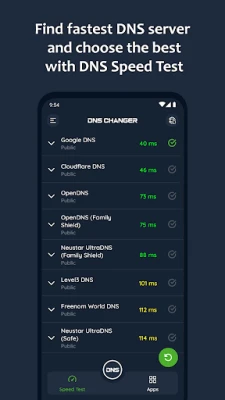 Optimalizujte svoje internetové pripojenie s DNS Changer - IPv4 & IPv6. Jednoducho zmeňte DNS server, nájdite najrýchlejší testom rýchlosti a užívajte si bezpečnejšie, rýchlejšie a súkromnejšie prehliadanie. Funguje na Wi-Fi aj mobilných dátach bez root. Získajte prístup k blokovaným webom a zlepšite online hranie vďaka nižšej latencii.