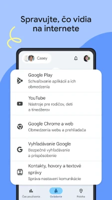 Okrem časového manažmentu vám Family Link ponúka rozsiahlu kontrolu nad obsahom, s ktorým sa vaše deti stretávajú online. Nastavte si robustné rodičovské kontroly v rámci služieb Google, vrátane Chrome, Google Play, YouTube a Vyhľadávania, aby ste filtrovali nevhodné webové stránky a schvaľovali nové aplikácie pred ich prístupom. Pomôžte svojim deťom udržiavať ich online prostredie bezpečné a súkromné, spravujte ich nastavenia účtu Google, vrátane možnosti pomôcť im so zmenou hesla alebo úpravou osobných údajov, čím posilníte ich digitálnu ochranu a súkromie.