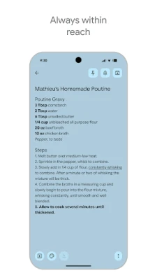 Premeňte chaos na poriadok a spolupracujte bez námahy. Google Keep vám poskytuje intuitívne nástroje na organizáciu: označte si poznámky prehľadnými farebnými kódmi a pridajte im vlastné štítky, aby ste k dôležitým informáciám mali vždy expresný prístup. Keď potrebujete niečo nájsť, výkonné vyhľadávanie vám okamžite nájde požadovanú položku. Chcete zdieľať svoje plány alebo spolupracovať na projekte? Jednoducho zdieľajte svoje poznámky s priateľmi a rodinou a sledujte, ako sa vaše nápady rozvíjajú v reálnom čase, či už plánujete večierok alebo riešite spoločný zoznam úloh.
